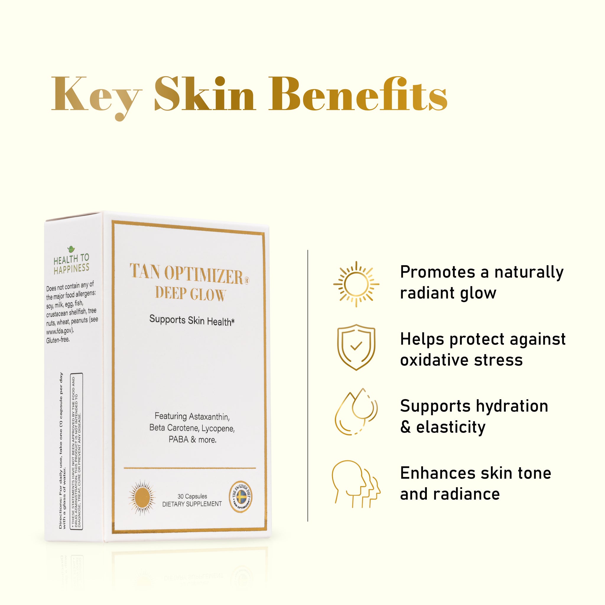 Experience the next generation of beauty from within with Tan Optimizer Deep Glow, a premium supplement formulated to nourish, protect, and enhance your skin’s natural radiance